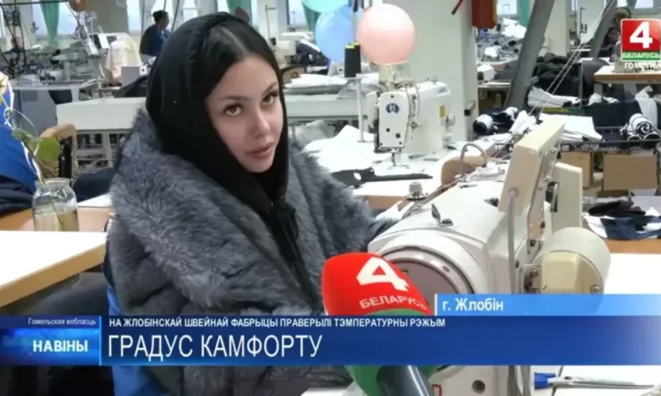 Кадр из сюжета госТВ, в который попала молодая специалистка, отрабатывающая диплом в холодном цеху