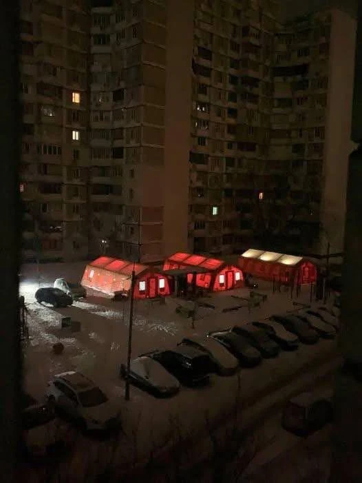 В наиболее пострадавших районах Киева, где электроснабжение так и не стало хоть сколько-нибудь надежным, установили пункты обогрева (на фото), где можно погреться, поесть, выпить чаю и зарядить мобильные телефоны.