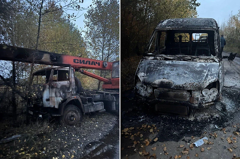 Последствия атаки дронов на авто «Черниговоблэнерго», в результате которой погибли два энергетика:
